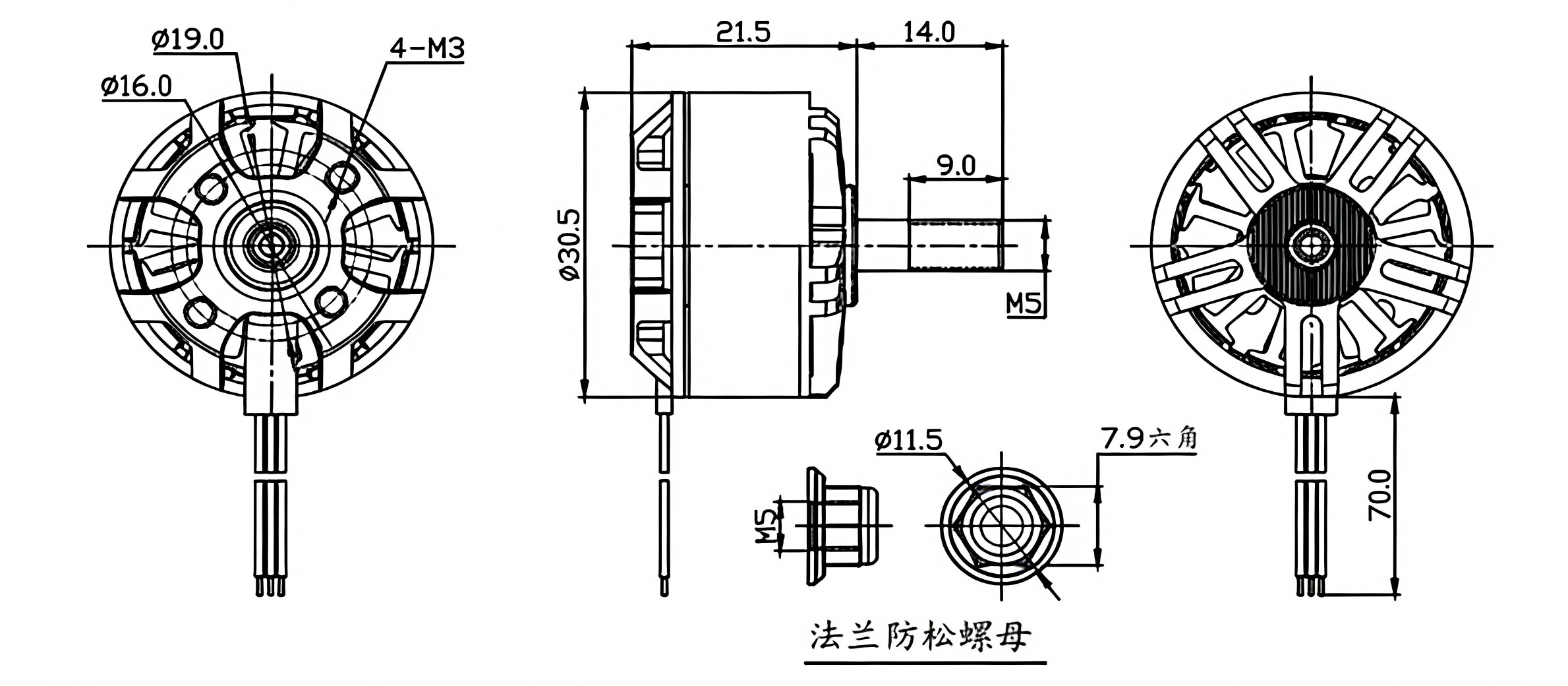 | Model | KV Value | Maximum Power | Maximum Current | Pull | Efficiency | Propeller | Battery Lipo Cells | ESC | |