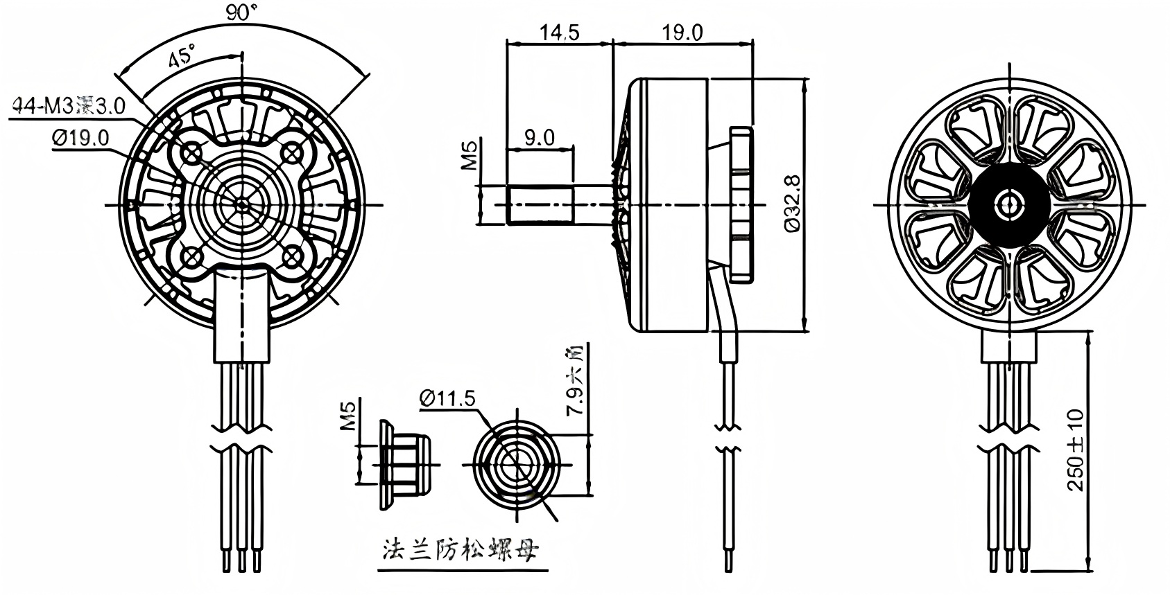 The large stator diameter allows the motor to generate substantial torque, enabling it to efficiently spin large-diameter propellers with higher pitch.