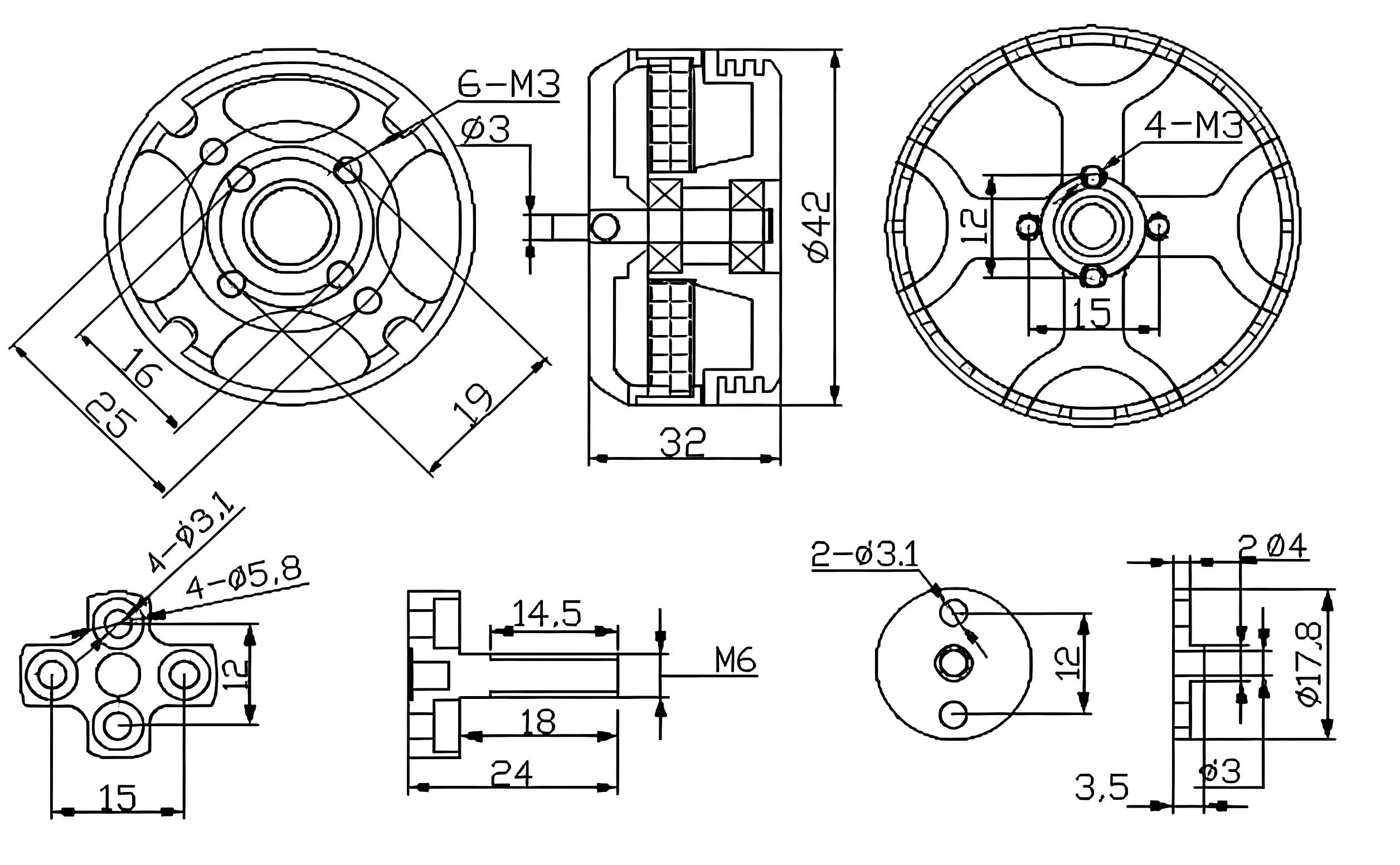| Model | KV Value | Maximum Power | Maximum Current | Pull | Efficiency | Propeller | Batterty Lipo Cells | ESC | |