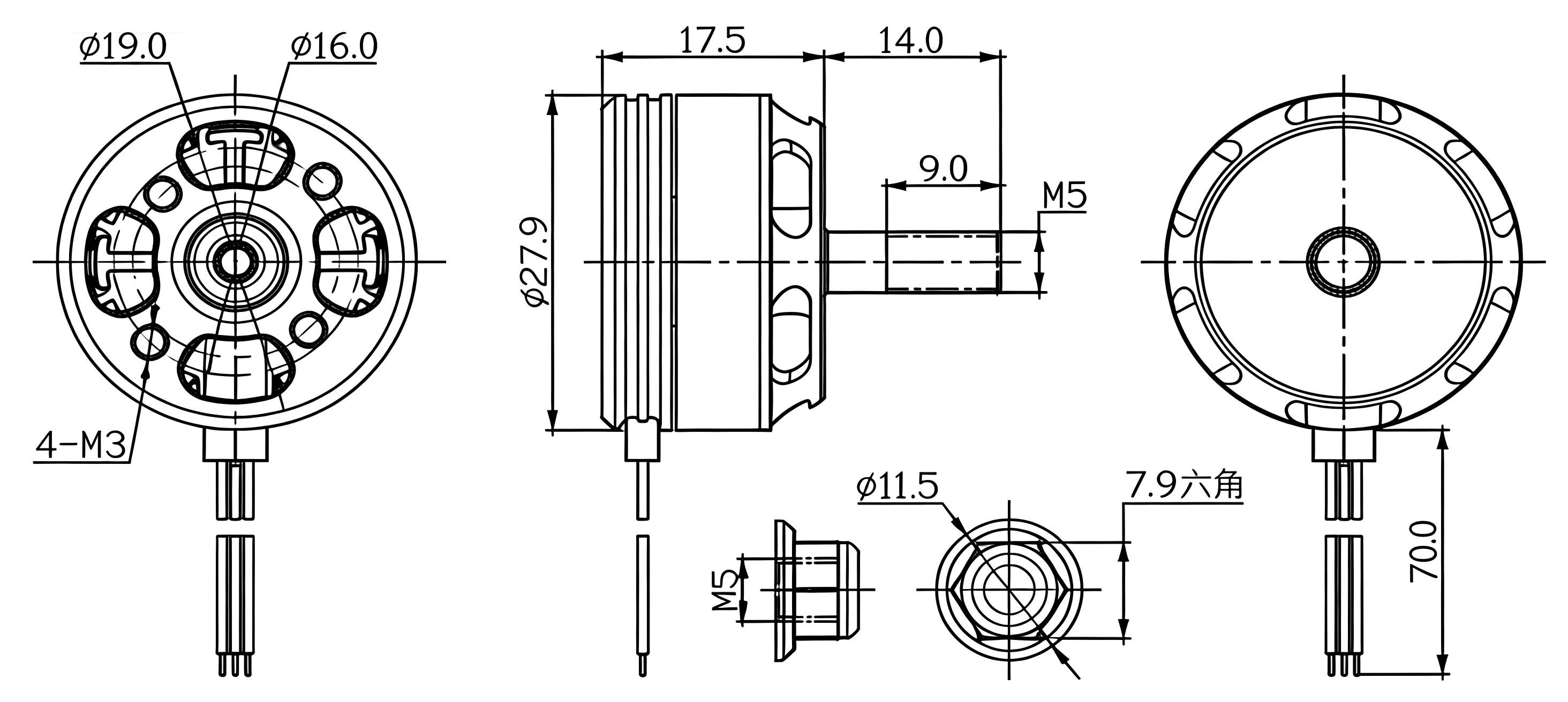 | Model | KV Value | Maximum Power | Maximum Current | Pull | Efficiency | Propeller | Battery Lipo Cells | ESC | |
