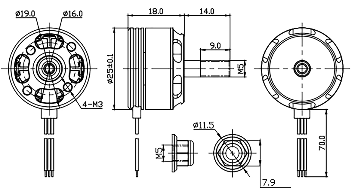 Three-phase brushless external rotor motor, 12N14P groove design, focusing on large pulling force, long endurance, low noise, suitable for heavy-duty long-distance cruising, professional film and television aerial photography.